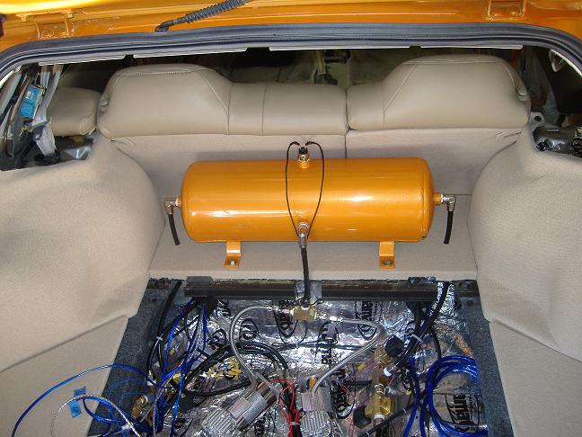 SMC air cylinders with 1/2" smc electric valves & 1/2" air line. 2 viair 380c compressors, and color matched storage tank... modified rear cylinder mounts and brackets, got another 3/4" lower in back....