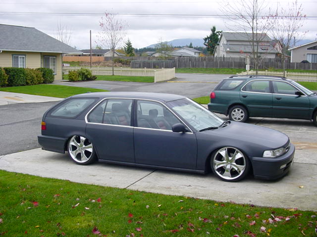 Custom mounts, shaved wishbone and cut strut tower for more drop.