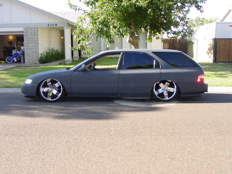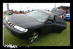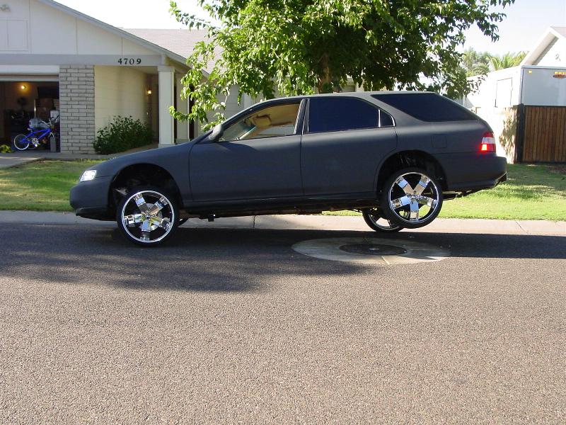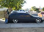 Black Satin primer,Shaved Everything but gas door, shaved door handles, hatch,hatch sqirter, antenna, side moldings, squirters, emblems, bumper body lines, marker lights on front bumper,1 piece crome projection head lights. upper Trendz billet grill, Trenz billet lower, Stainless Steel Elipital Elliptical tube licence plate bracket that I made, dark ass tint! just got a rear bumper step made out of polished billet from the interior shop.