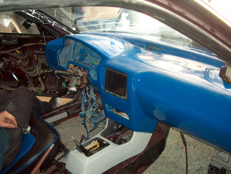 ALL FIBERGLASS: DOOR PANNELS, DASH WITH MOLDED 6 IN TV, BLACK AND BLUE LEATHER CUSTOM CENTER CONSOUL