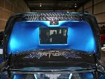 HID's, VIS Invader Carbon Fiber Hood, VIS Carbon Fiber Trunk, shaved door handles, 2-tone black and blue (dupont warp speed blue) all matrixed out done at Ten-Ten Customs in Vegas