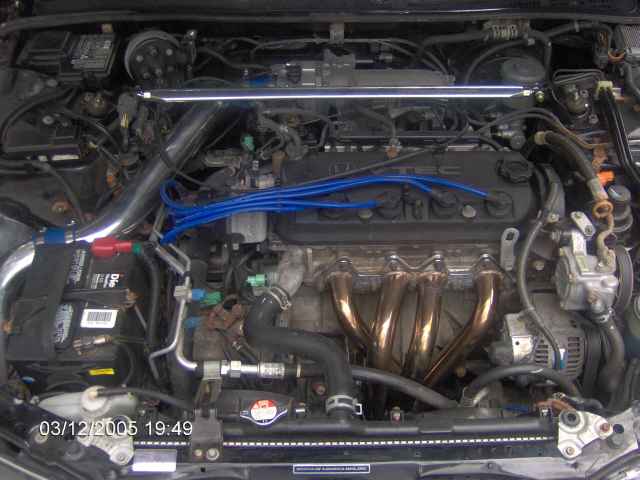 V-tech four banger with cold air intake, a throttle body spacer, a MEGAN RACING exhuast system (headers, cat converter, muffler, etc.) new plugs and wires and a strut bar