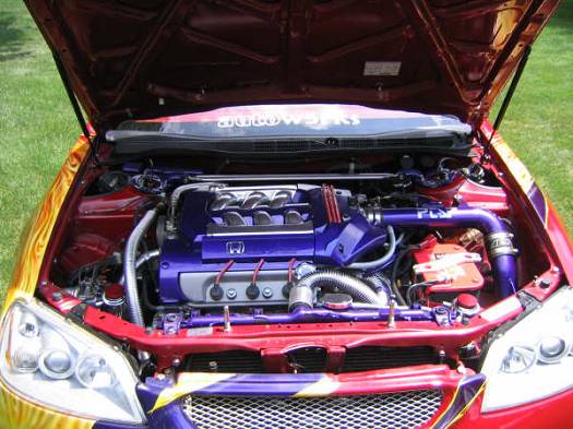 v6,cold air intake,comptech headers,greddy dual catback,high flow cat,polished intake manifold,optima red top,chrome radiator hoses,chrome tanks for overflow and power steering,jet v force controller,chrome strut bar