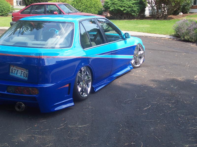 shaved door handles, moldings, trunk, taillight conversion (supra), shaved clear corners, emblems, custom hood, molded extreme body kit, shaved custom gas tank