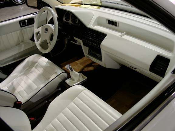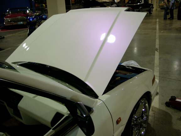 Shaved emblems, locks, antenna, washer squirters. White vinyl phantom top.