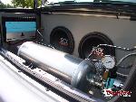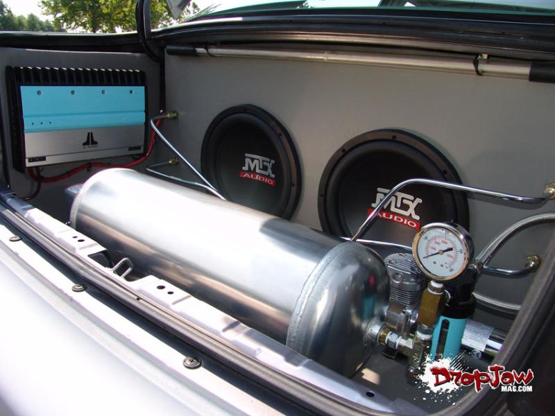unibody dropped on firestone 2500s all around, 5 gallon aluminum tank,8 3/8 smc valves, 444c viair,480c compressor, 3/8 line, 5 switches installed, also chrome eai 5 switch controler, air zenith digital 200 psi gauge installed, square d switch and viair relays, chrome 3/8 hard line, air zenith pressure sending unit,chrome hardlines,chrome fluid filled gauge on tank