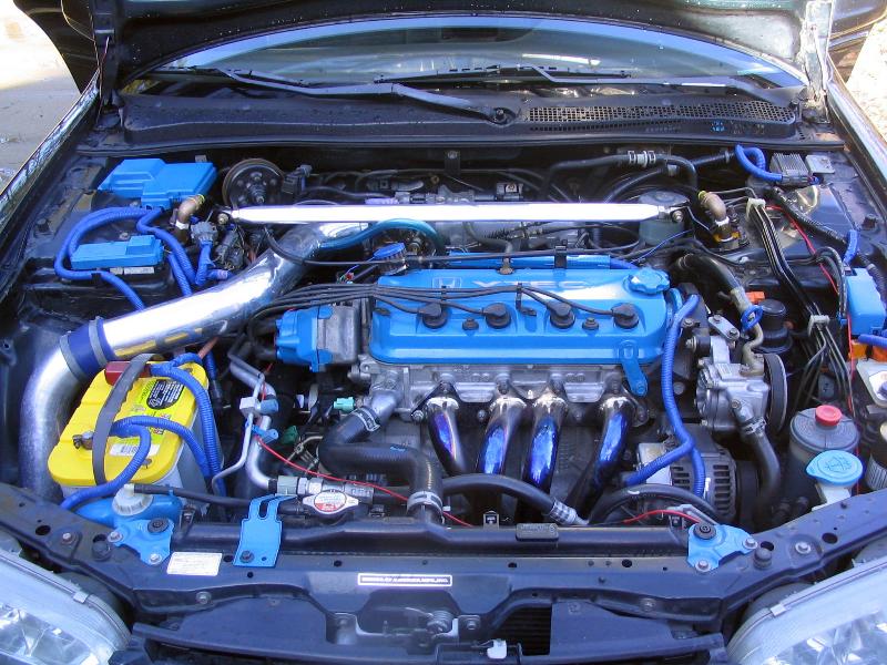 SOHC VTEC dressed up blue and chrome. CAI,Header, removed resonater, ractive muffler(fart can),