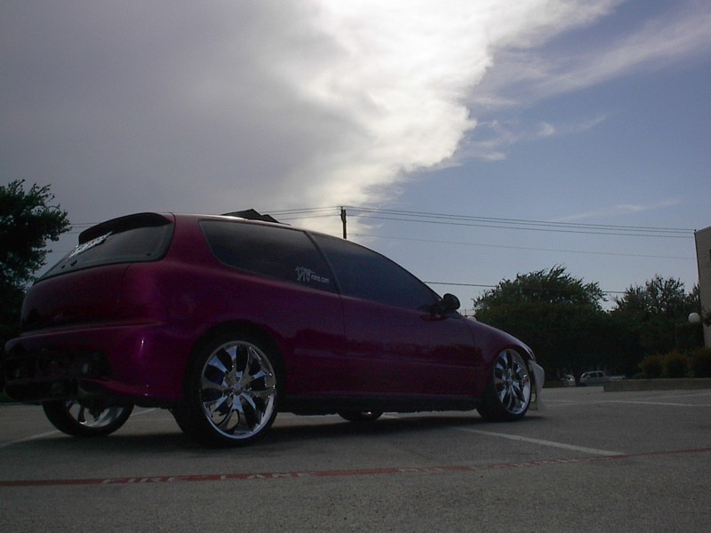 4cyl. nothing special with AEM intake,9mm sparkplug wires with some painted accessories chrome header and downpipe