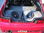 2 fosgate 12s, 300 watt fosgate amp, 300 watt soundstream amp, 6.5" audiobahn component set, 5.25" sony xplod speakers in the doors, sony flip down cd player