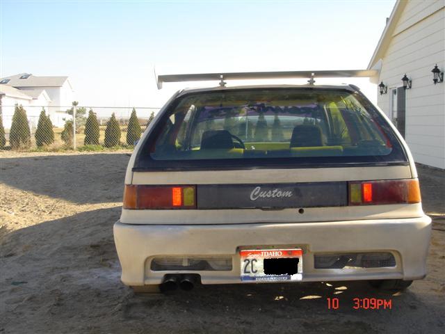 Shaved door handles,body line, roof lines,gas door,emblems,hood squirters,antenna,stock spoiler, molded on buddy club side skirts, buddy club rear body kit,z3 fenders, custom sun roof, hood pins,yellow window tint, alum wing on roof.