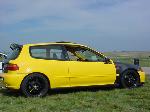 Complete color change to Sunburst Yellow inside and out.Shaved handles and antenna.Spoon Sports Carbon Fiber hood,fenders,rear wing and front chin spoiler.Spoon Sports Carbon-Fiber Door Pillars,and Power Mirrors. Custom Carbon Wrapped Tailgate. JDM EG6 SiR2 Head Lights w/H4 HID Conversion Kit, Stanley amber Side Markers Tail Lights and Vision amber Corner Lenses. JDM EG6 SiR2 Projector Fog Lamps. *Custom Reflective Spoon Graphics.