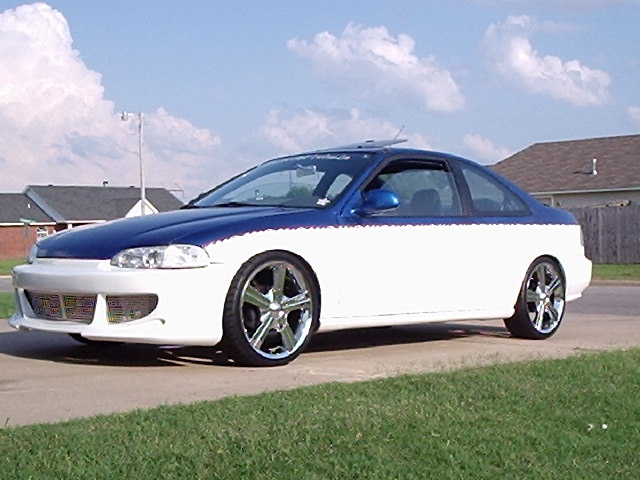 full custom 2-tone paint with tribal stripe dividing the colors. Wingswest front bumper. Shaved bodyline, hood squirters, trunk and custom rear bumper.