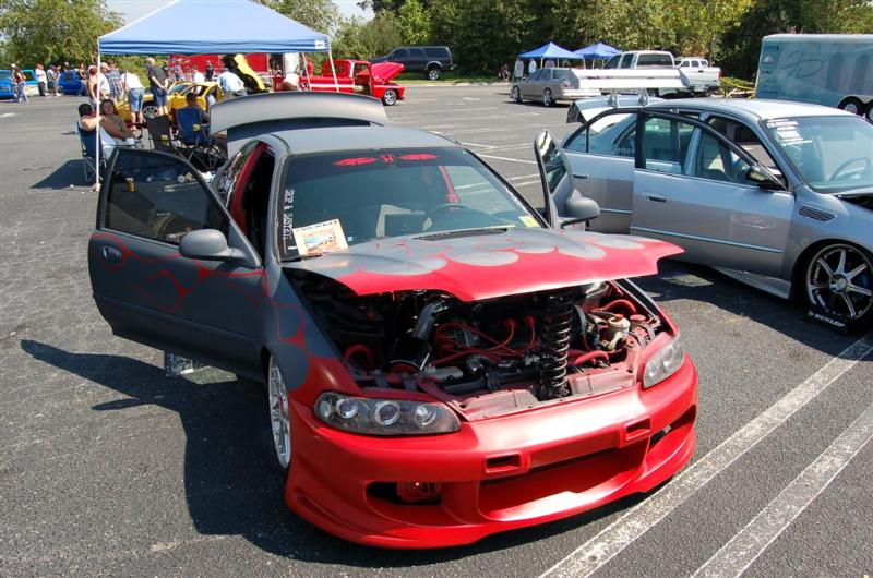 1.6 liter vtec motor swap, intake, 10.3 obx spark plug wires, headers, powertec exhaust, red split loom, steel braided lines, custom civic metal emblem,