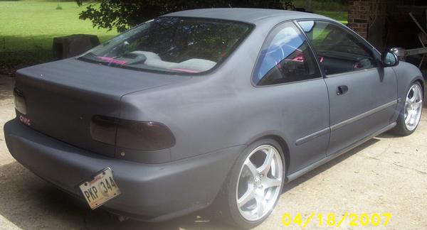 Shaved trunk, crooked license plate, smoked tail lights, ALT 17' racing rims, 205/35 tires, coil overs, 3 trail horns, 7 gallon air tank