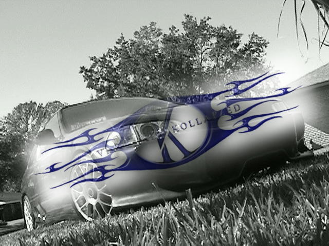 Combat Bomb body kit with electric blue paint and a shaved front emblem,aftermarket lights all around