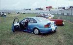 Blue and White color Dyed interior, APC acessories, Custom Fiberglassed Dash, Streetglow neons under dash, Blue Carpet,