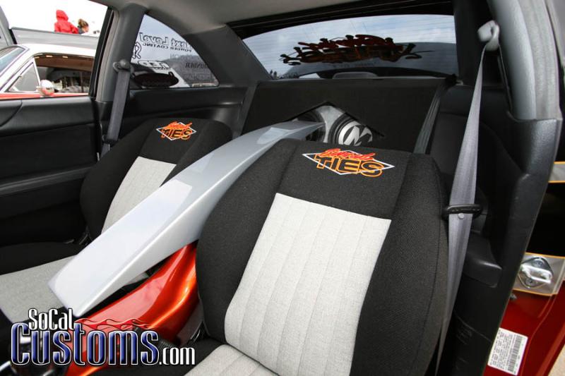 Some tweed on sterio, just kept clean seats still, but finished two toned orange and silver center concel in shape to match back half of graphix on exterior.