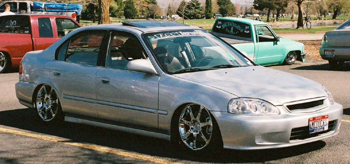 Chrome 17x7 motegi MR7's , 205/40 Kuhmo supra 711 rubber.