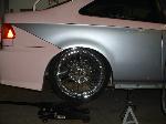 full body kit .. bullet fenders .. m3 mirrors .. duel halo projector headlights .. different tail lights ... custom painted carbon fiber hood ... duel exhaust .. shaved door handles ... shaved side moldings ... shaved trunk ... tag relocated on drivers side in rear bumper ... shaved ant. ... two tone paint job which is baby pink and sliver w-a black pin stripe which flows from the outside to the inside