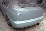 shaved everything....inner tails, outer taillights, tag, handles, wing holes, trunk key hole, squirters, moldings removed and holes behind them shaved leaving body line, antenna, suicide rear doors, LED taillights in rear bumper, sliding rag top, Titanium Fiber hood, ABS Dynamics modified CW-2 front bumper to clear FMIC, ABS Dynamics ZERO Side Skirts, ABS Dynamics Buddy Slim rear lip, ABS Dynamics carbon fiber bomex style wing (un installed), ABS Dynamics carbon fiber twin beam headlights, JDM style amber corners, sea foam green primer