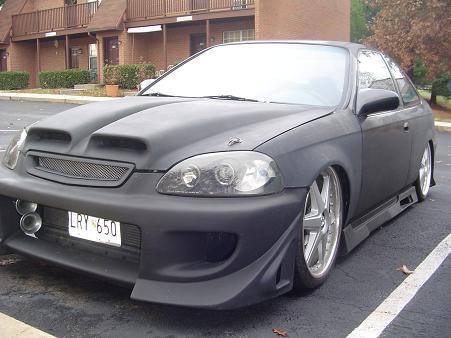 car is for sale, i am taking offers. i now have a oem carbon fiber hood on car, 00 si taillights, and car was resprayed flat black, i will have new pics up tomarrow. i also have a whole lot of extras with car such as lambo door hinges, civic si trunk lid, taillights, guage cluster, hood, front bumper, side skirts, ramdom interior pieces, and so much more and its all going with the car. my name is dave and my cell is (443)235-0551