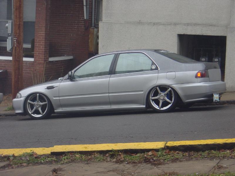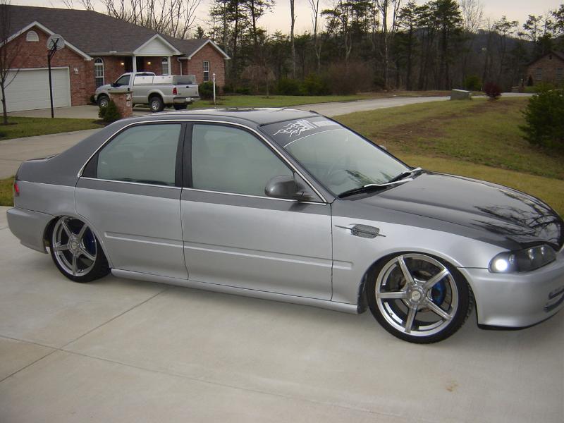 Two-Tone Pewter and Silver Mist, Carbon Fiber Hood, Carbon Fiber M3 Mirrors (Due to some punk ass who broke off my stock ones), Shaved Handles, Shaved Moulding, Shaved Inner Tails, Shaved License Box,Shaved Emblems, Spoon Style Fenders, 1 Piece Black Halo Projectors, Black Altezzas, Mesh Grill, Plasma Glow Underbody Kit, Mirror Tint, 45lb Poppers
