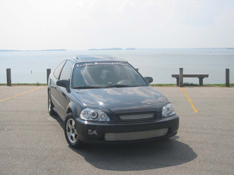Black with Pin Stripe, Sunroof, Exotic Sticker, Next Generation Euro tails, Clear Projectors with Halos up front, Red Euro Blades, White Cobra Eyes windshield sprayers, White Street Glow Gold Series Underbody Ground Effects,Two white mesh grills installed into factory bumper, and 20% tint all around with 5% on the sunroof and the strip on the windshield, Lightweight Composite Spoiler with LED brake light, shaved all factory emblems, evil H with white neon glow