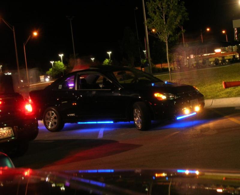 A 7" LCD screen with a PS2 on it, shit knob, racing pedals.