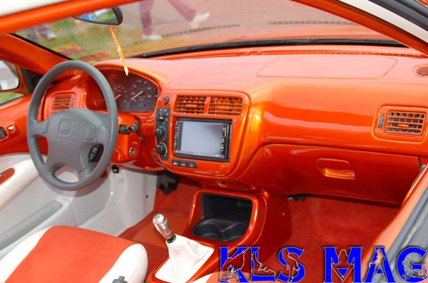 White Leather Seats with Orange Suede inserts, Orange Suede Headliner, Orange Carpet