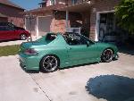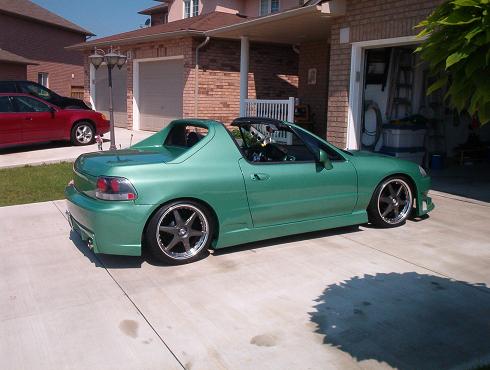 buddy club body kit..shaved wing,emblems, fog lights,3rd break light,intenna,rear plate. euro tails,black headlights with HID. carbon fiber hood, green underglow and custom paint