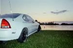 Wing west lip, JDM headlights, JDM grille inserts, VIS carbon fiber hood, Licience plate relocator,red H emblems, removed amber from tail lights, mugen side decal
