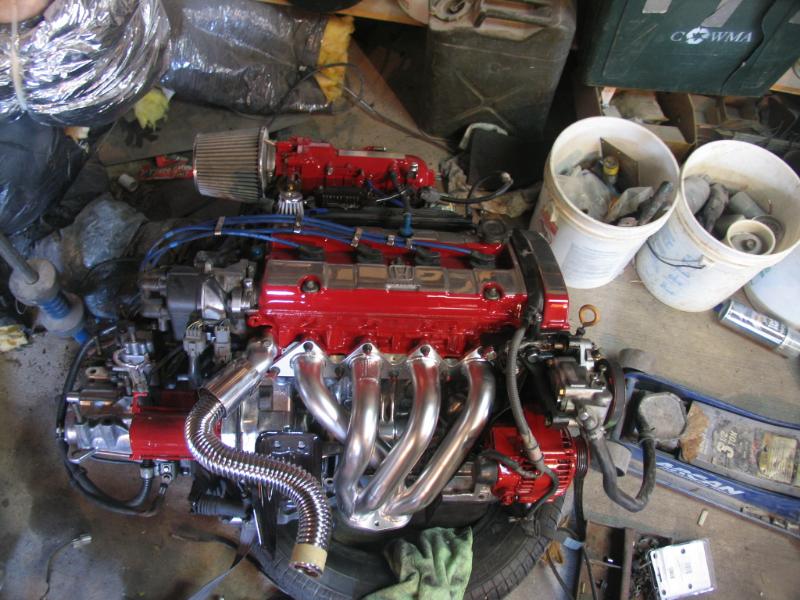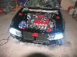 2.3 polished, chromed, and painted, bolt on bs, cams, clutch, computer, head and intake port matched. Shaved fire wall, aprons, and core support. Relocated all the wiring under the dash to clean up engine bay.
