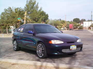 17 color tribal chameleon and candies paint job. Shaved handles, remote door pops, shaved emblems, shaved antenna, frenched antenna in rear fender, supra wing, blue side turn signal lights