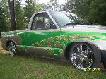 shaved,taillights,cal skin combo,10'' led's,Painted Hok Tangelo Pearl hok white with red ad orange pearl,kandy limetime calidesign and tribals,yellow camel hair and fine-line pinstriped SOLD
