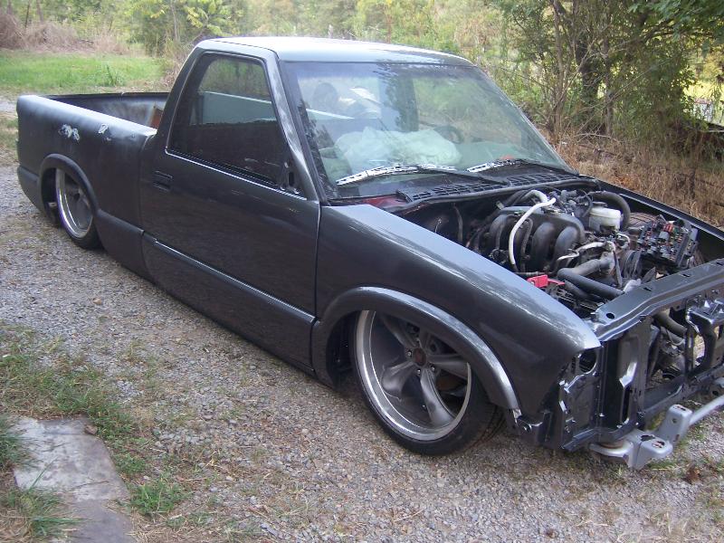 new front clip (grille, bumper, headlights and corners) and 8000K HIDs...shaved gas door, shaved taillights, molded rollpan, caddy tails, Goodmark Steel Cowl hood