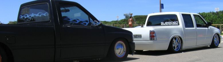 Shaved door handles , blinkers , whole tray , ariel. Welded shut tailgate , all lights are euros.