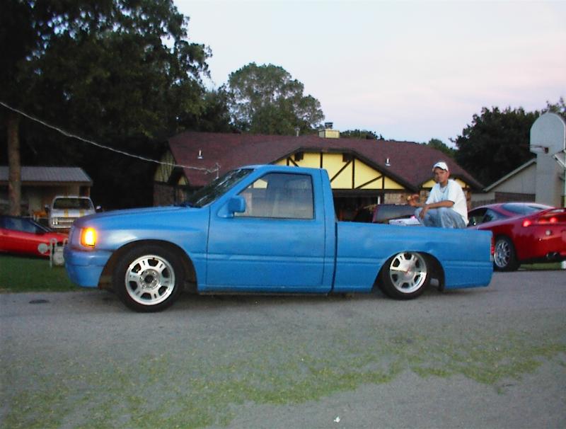 Lowerd up front with tweakes torsion bars, bagged out back with shitty over the axel bags and flipped leaf springs
