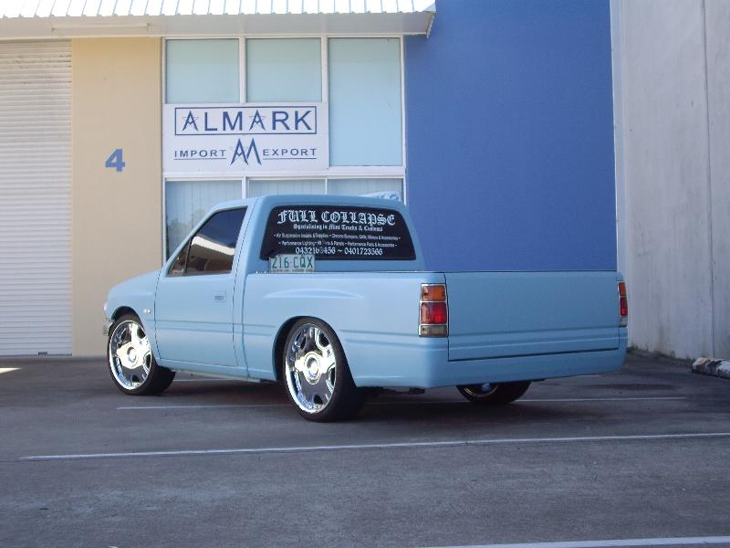 Shaved in baby blue 2-pac primer, Custom Alluminium Hard Lid, Crystal Lights, full chrome front, black window tint, etc.