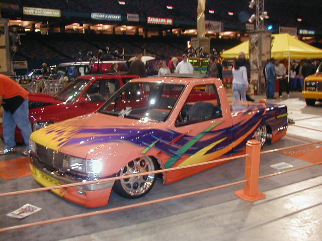 Checkmate bed cover, StreetBeat sliding rag, Rodeo headlights and bumper valance, Custom paint by Kal Smith. Body mods by Kevin Holland of Kunfuzed Customz; Gulfport, MS. Car Wear clear lenses.