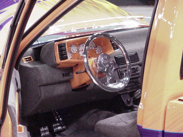 RCI poly lowback racing buckets with Tweed covers by Chad Caro, Colorado Customs Alamosa steering wheel, modified stock dash (molded in a/c vents, glove box door, emergency brake handle, & all center controls)with AutoMeter gauges by Cory Himel of Prestige Customs & Autosound; Metairie, LA. power window kit.