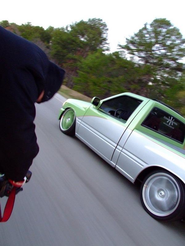 02 honda passport front end conversion, shaved door handles, tailgate handle, windsheild squirters, wipers, all body seams, antenna, molded rollpan, molded licence plate box through body line, rodeo doors and mirrors, sliding ragtop, "jdm" diamond cut rodeo tails, prolly some other stuff too i cant think of at the moment