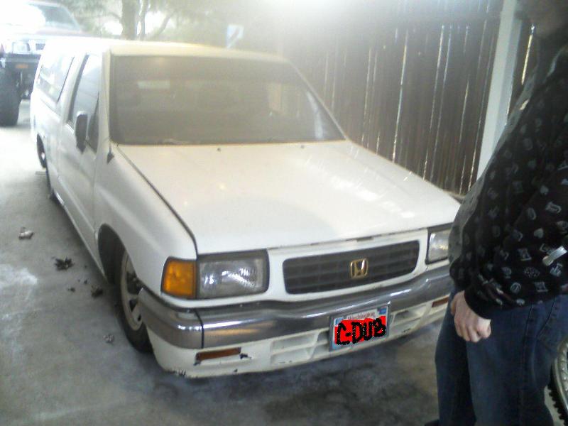 White with matching canopy, shaved door handles, relocated tailgate handle, Honda Passport frontend, and a roll pan.