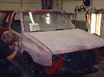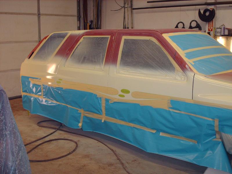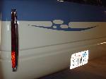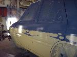 Amigo front end swap. Shaved corners(These fuckers were a night mare. We got 9 Hours into each side just in metal work. As little filler as possible. Thanx Jeff from "JRS Customs", couldnt have done it with out you!), antenna. hood squirters, and emblems. Ford Ranger headlights with a Trenz Toyota Phantom billet (cut down). One off/one pieced front bumper. Shaved the taillights, lower rear rocker corners, spare tire mounting holes, and handles. It has full one-off rear skin combo(thanx Mother Goose Customs) and caddy's with a plate box. Shaved mirrors(replaced with chrome Buell motorcycle mirrors), third brake light, lightbar mounts, and roof rack. 66" x 36" StreetBeat rag. Every thing is primed with custom mixed Sherwin Williams "Passion Purple" and "Mello Yellow" with a cool graphic breaking it up.....Thanks again Jeff at JRS Kustoms.