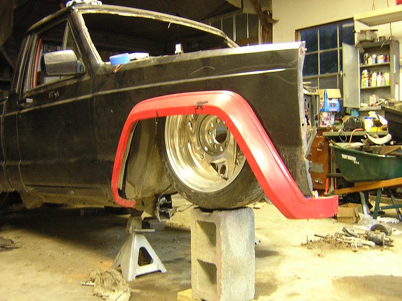 85 cherokee wagoneer header panel,91 MJ fenders/hood/tailgate,97 cherokee doors with 1 piece door glass,chrome door and tailgate handles mirrors,locks gona have to run a 2 in cowl hood tho if i dont change the v8