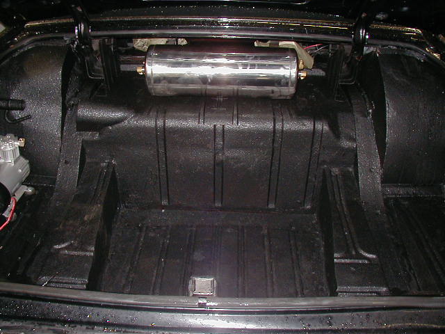 bagged 1\2 inch line, GC extreme valves, air ride 4 link, oasis compressor, slam specialties bags, tubbed driveshaft tunnel..driveshaft lengthened 2.75 inches. custom gas tank built. new rear fenders in the trunk-- trunk floor and inside floors rhino lined