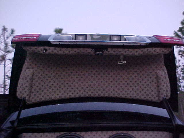Alpine CVA-1004 head unit, Alpine CHA-S634 disc changer, PS2, Kicker KQ9 9 band EQ, 2 sets of Alpine SPR-136A components, JL AUDIO E4300 to run the mids, JL AUDIO E1800D to run the subs, 2 JL AUDIO 12W3v2's, 2 Luxma 7" headrest monitors, Stinger wiring and a fully sound deadened trunk. The install was done in my shop by me and a friend.