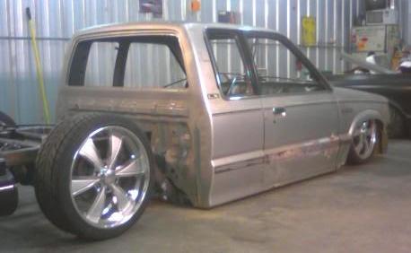 stock floored...pinch weld cut off...shaved everything...35x35 ragtop...suicide doors...wood bed kit