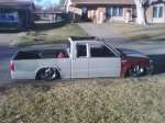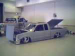 MY TRUCK HAS EVERYTHING SHAVED, FRONT TILT HOOD, 3 IN. BODY DROP, 4X4 FENDERS, AND A RAG TOP