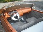 tweed with flames stitched in seats and door panels, fiberglass painted dash, custom steering wheel