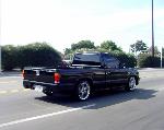 The truck was block and the emblems were shaved off. The paint is from DuPont and the color is Pitch Black. Body work and paint job was done by Angel's Auto Body in Huntington Park, California. For lights it has H4 conversions with PIAA's super plasmas HID and APC clear corners and bumper lights. Front clip is stock but chrome.